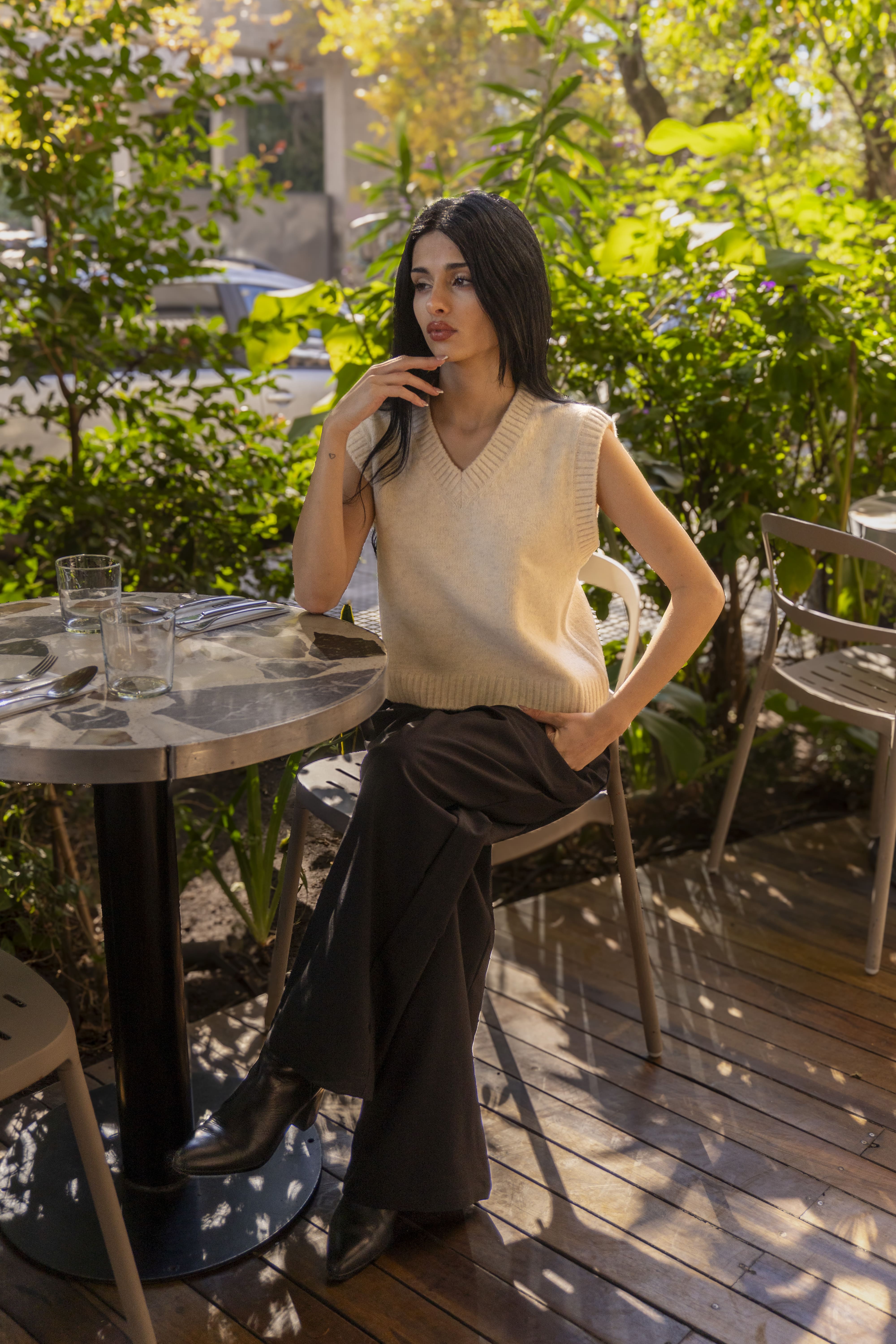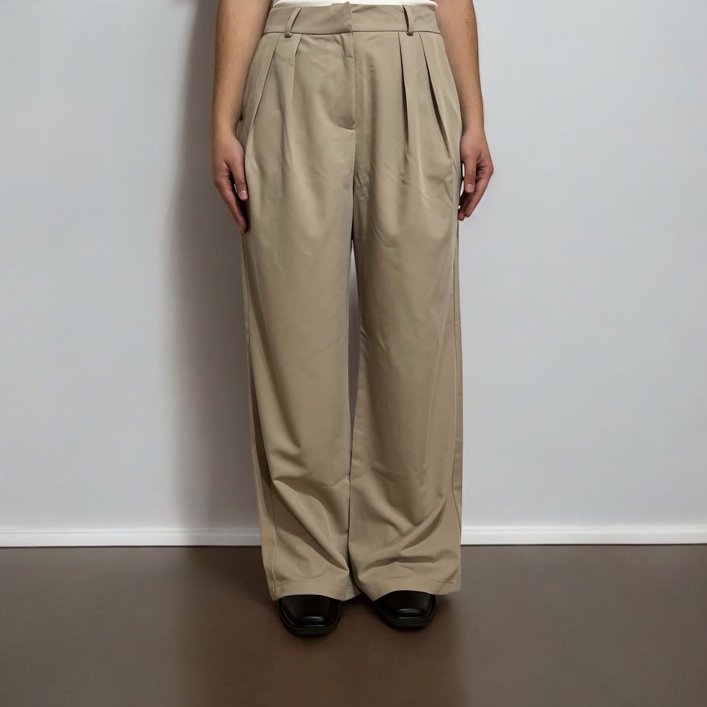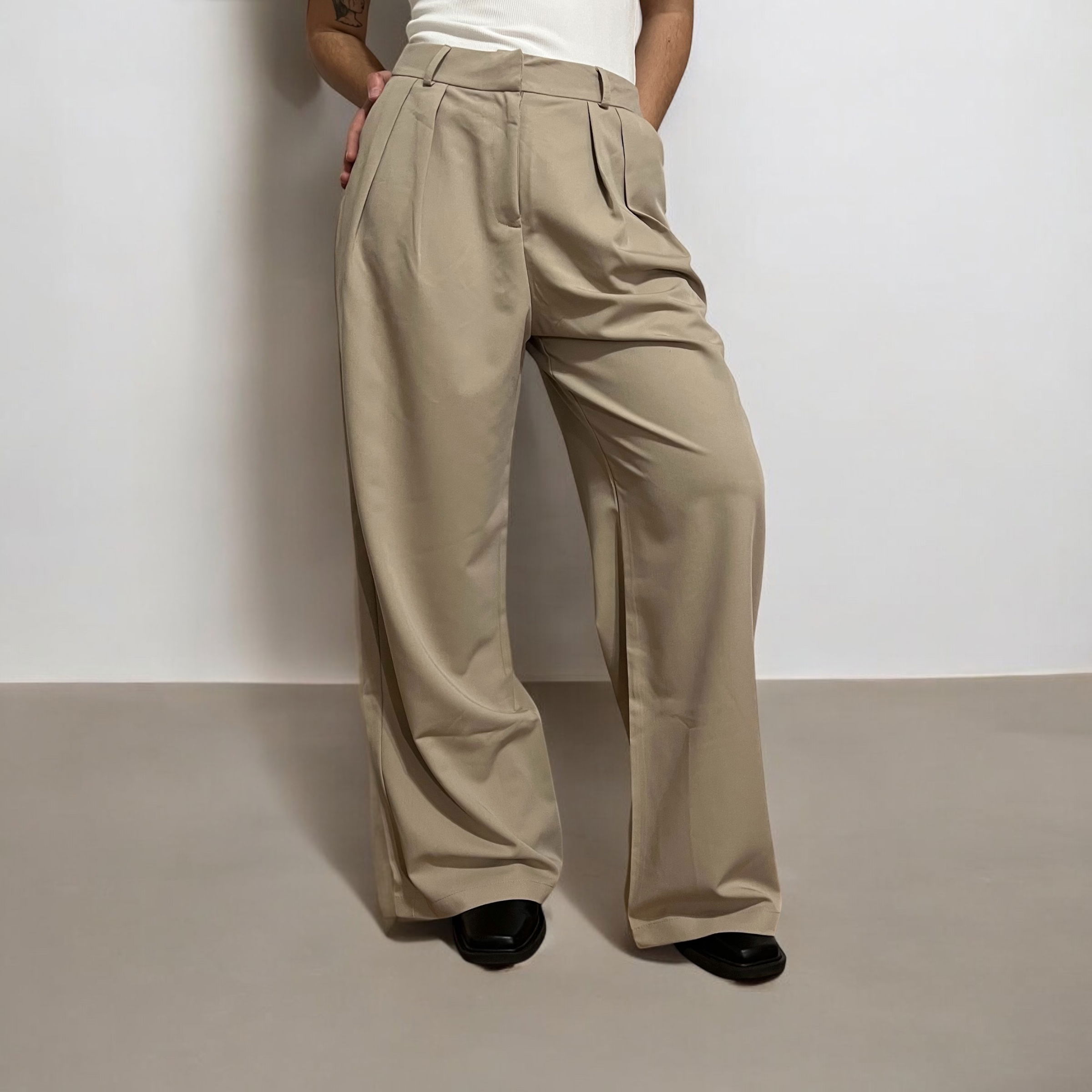 Pantalón sastrero con pinzas, gancho interno, pasacinto y bolsillos. De calce prolijo y estructura elegante, es ideal para armar looks formales o elevar un outfit casual con un toque sofisticado.
